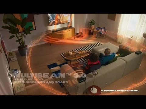 JBL独自のMultiBeam™ 3.0は、壁と天井に音のビームを放射し、反射させることで側面や天井にスピーカーがあるかのようにどこに座っていても、圧巻のシネマサウンドを体験できます。個々のモデルに最適化することで、より精度の高いサウンド・ビームフォーミングが可能となり、部屋中を舞うサウンドがよりシームレスにつながるようになりました。