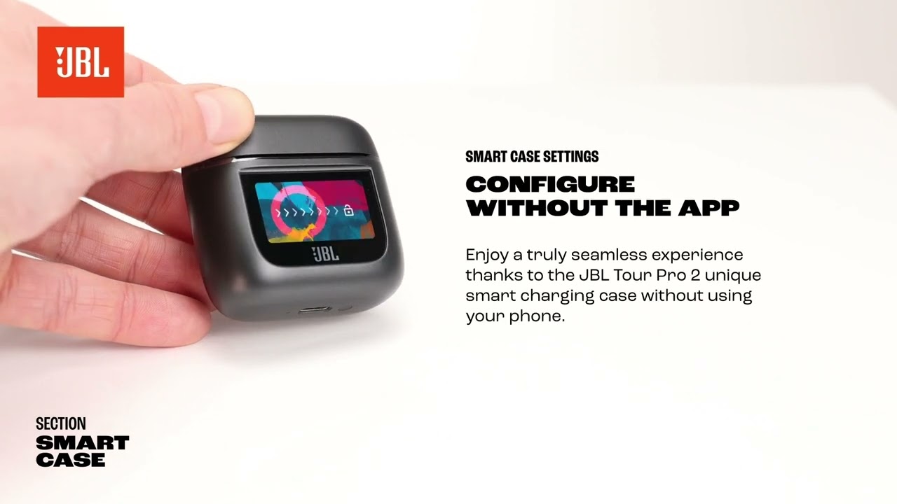 充電ケースのスマートタッチディスプレイからイヤホンの設定、通話と再生の管理、オーディオ設定やバッテリーレベルの確認、アラーム設定などが可能です。スマートフォンやJBL Headphonesアプリを使わない、シームレスな体験をお楽しみください。