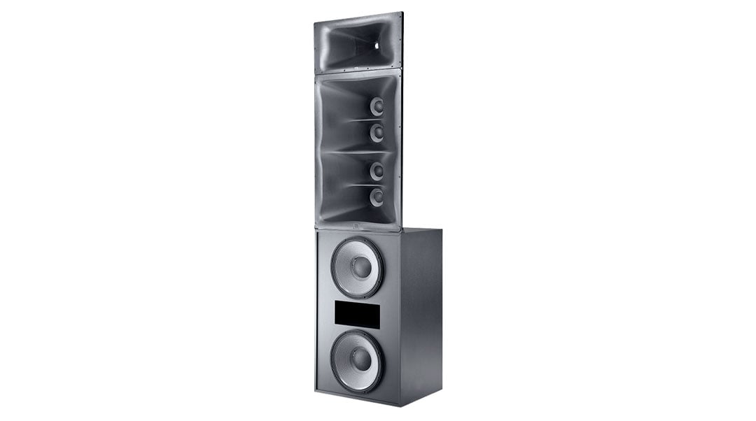 こちらはJBLの映画館用のスピーカー「5742」です。1つのスピーカーに7基の異なるスピーカードライバーが搭載されその高さは2.8mにもなります。「遠くまで音のエネルギーを失うことなく届ける」「しっかりした低音を再現する」など映画館に求められる高い要求に応えるスピーカーを作り続けることで、JBLはブランド誕生以来世界中の様々な映画館にて採用されています。