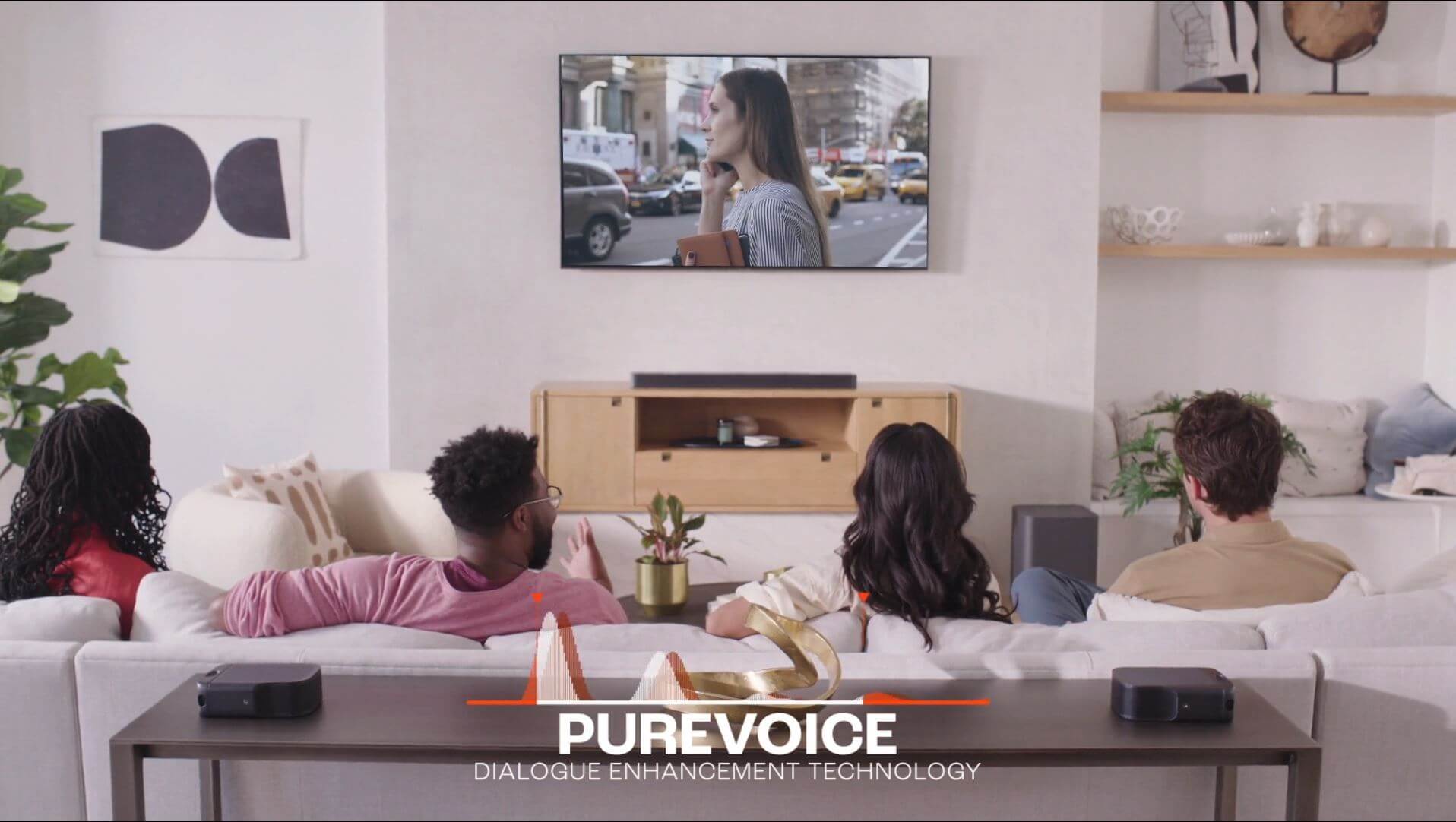 また、映画で最も重要な音声成分である「セリフ」にも細心の注意を払っています。BAR 1000のためにJBLが新たに開発したダイアログ・エンハンス技術「PureVoice」テクノロジーは、独自のアルゴリズムを使用して声の成分をリアルタイムで解析しその声の明瞭度を常に最適化するという革新的な技術です。