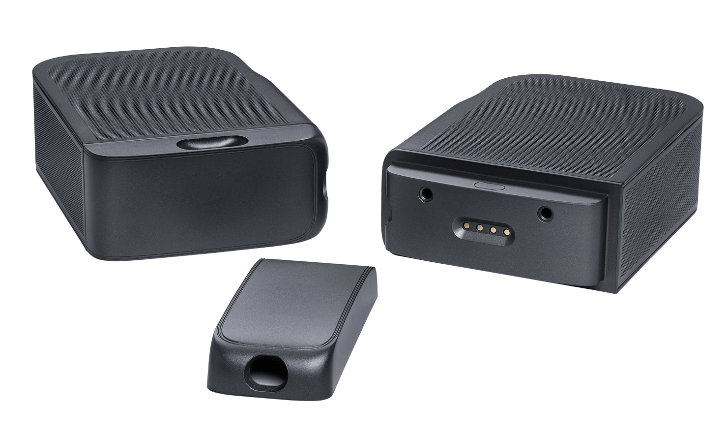 また、ワイヤレスサラウンドスピーカーをサウンドバーから外した際に、充電端子がむき出しのままではせっかくのリビング空間が台無しです。サラウンドスピーカーを外した時にも美しい製品外観を保つため、充電端子を隠すサイドキャップも付属しています。